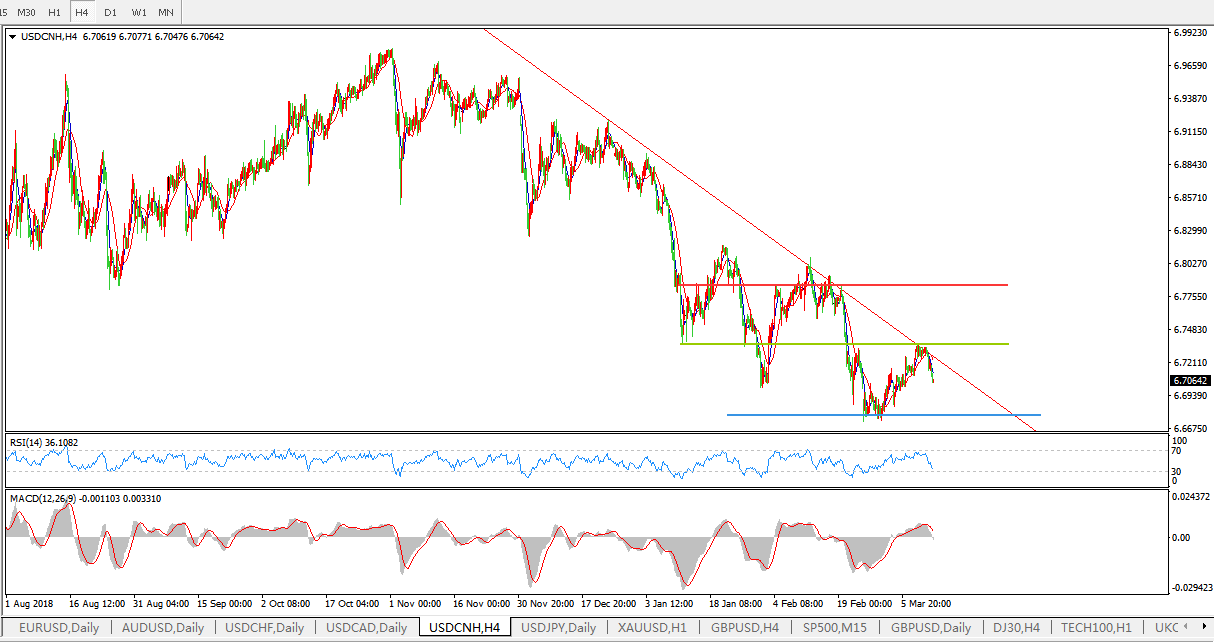 美元兑人民币USDCNH 4小时图: