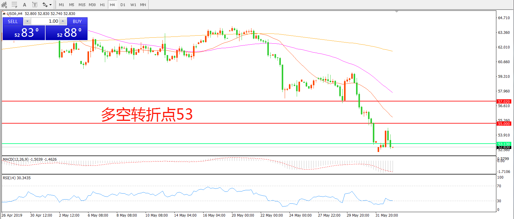 多空转折点:53.00