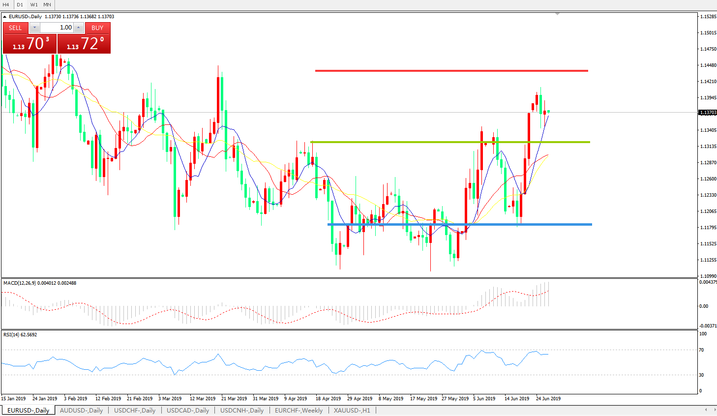 技术面简析:日图均线呈有序多头排列,汇价上攻后高位横盘整理,MACD在0轴上方运行且动能有进一步放量迹象,RSI触及超卖区域后开始走缓,预计汇价短期窄幅整理修正后将进一步上行。