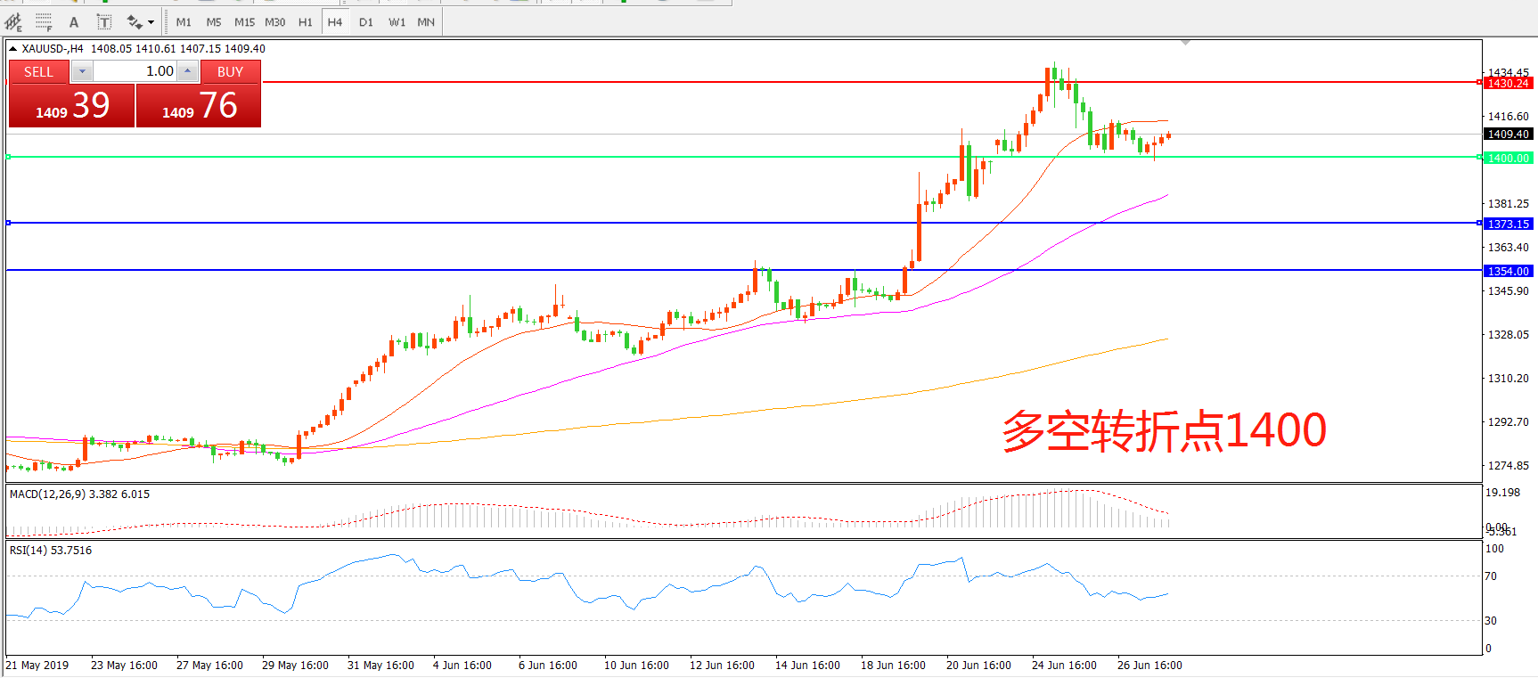 多空转折点:1400.00