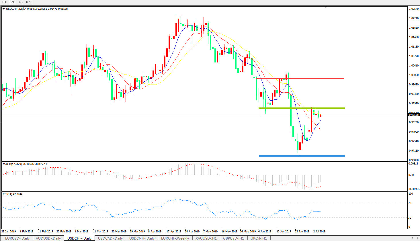 美元兑瑞郎USDCHF 日线图: