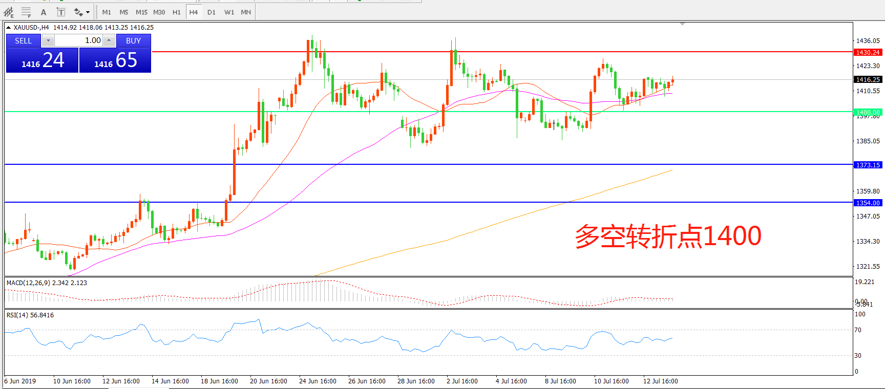 多空转折点:1400.00