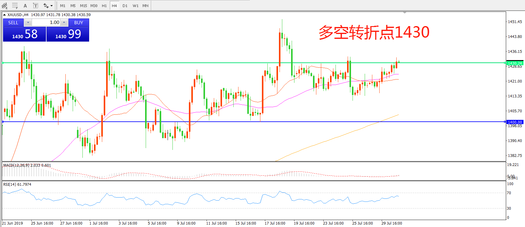 多空转折点:1430.00