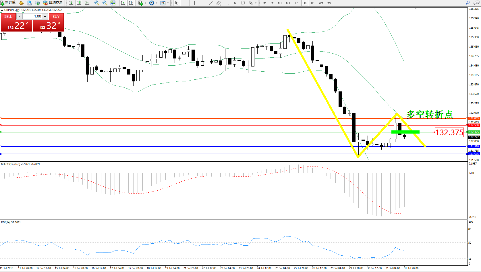 交易策略:132.375下方看跌,目标131.928131.695