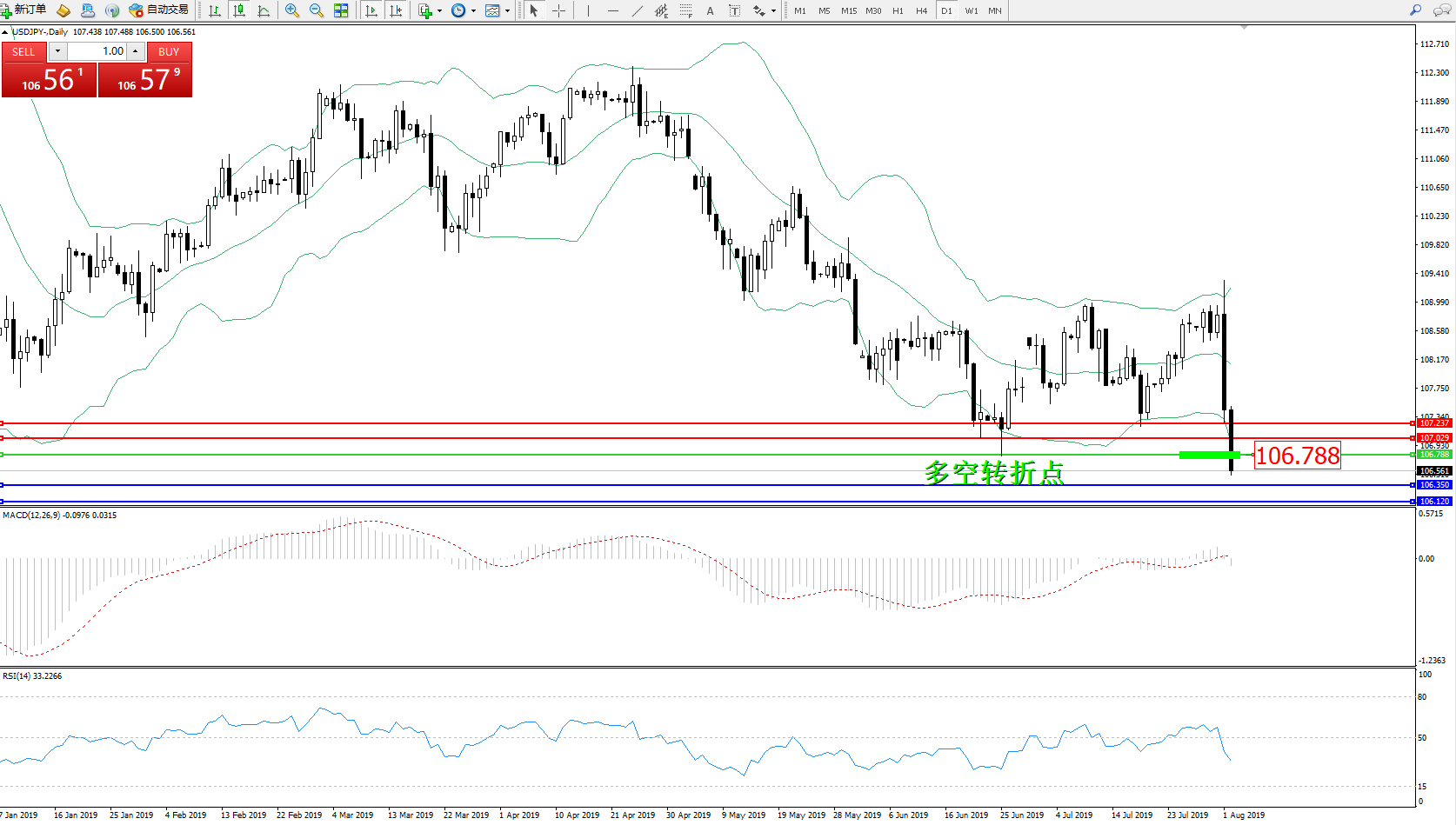 交易策略:106.788下方看跌,目标106.350、106.120