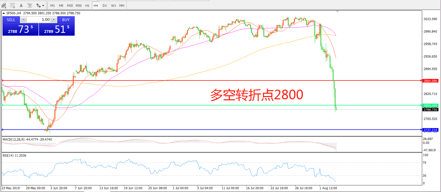 多空转折点:2800.00