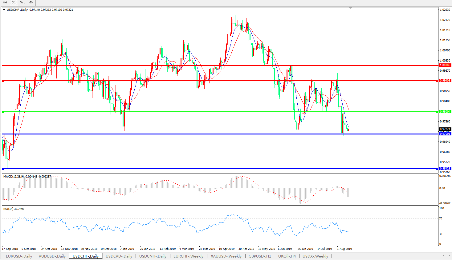 美元兑瑞郎USDCHF 日线图: