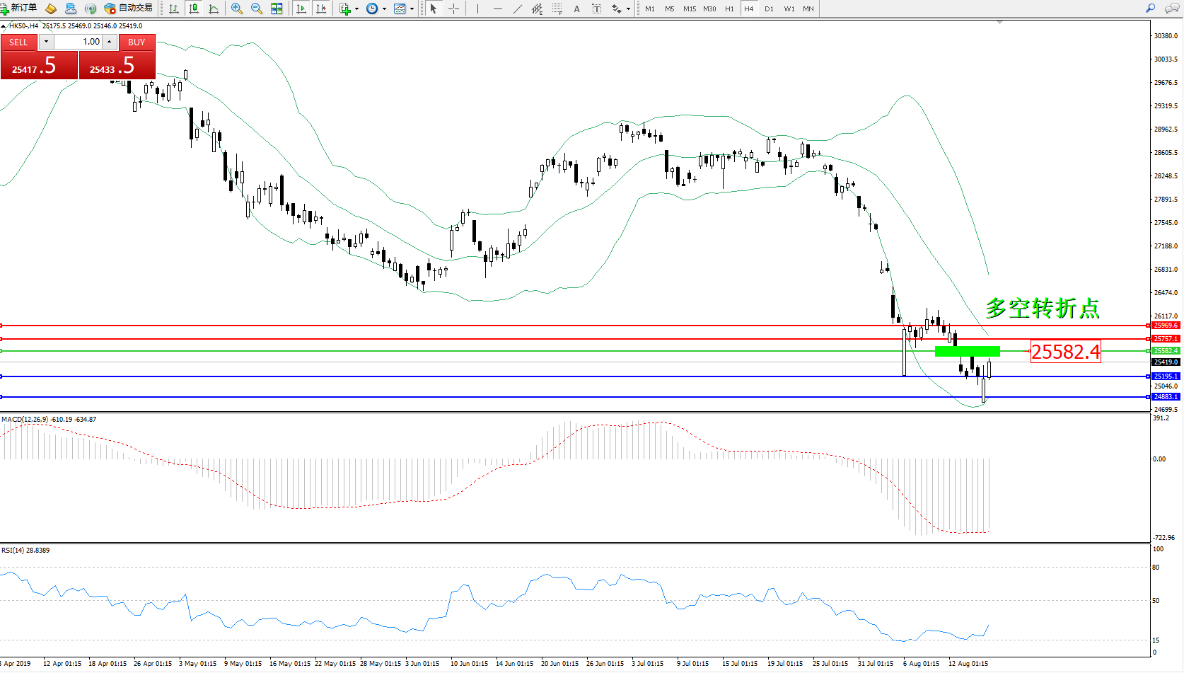 恒指HK50 ——4小时K线图显示: