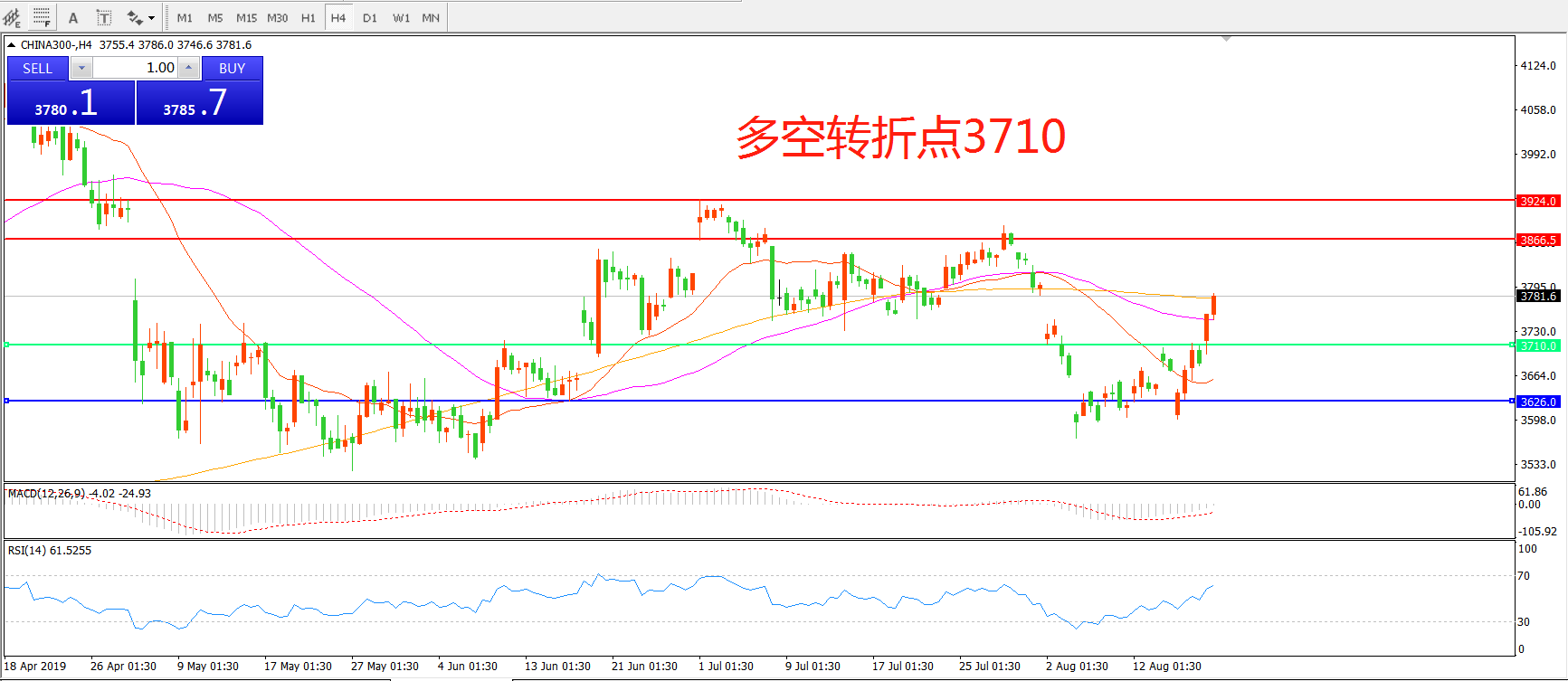 多空转折点:3710.00