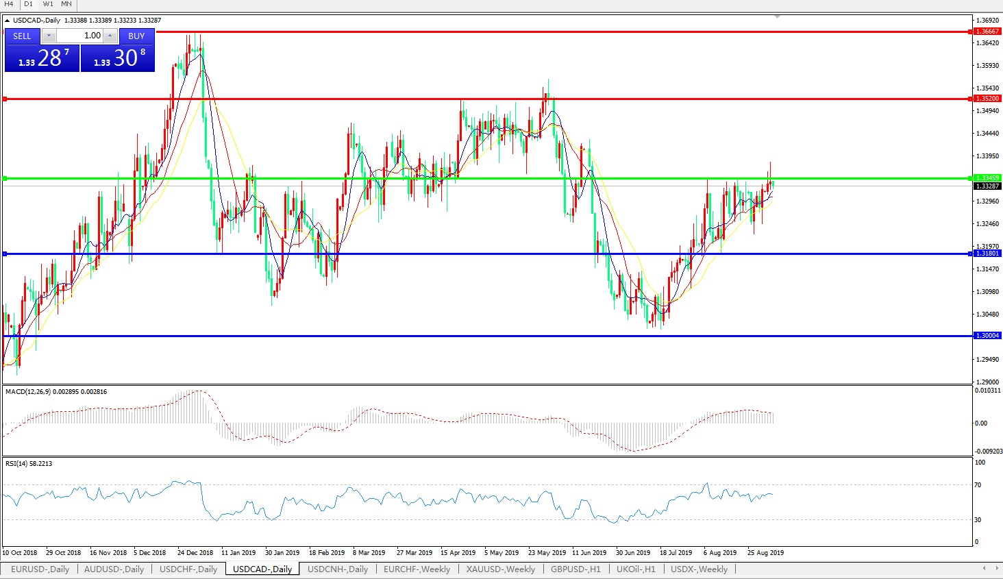 交易策略:1.3345之下,看跌,目标价位为1.3180,然后为1.3000。