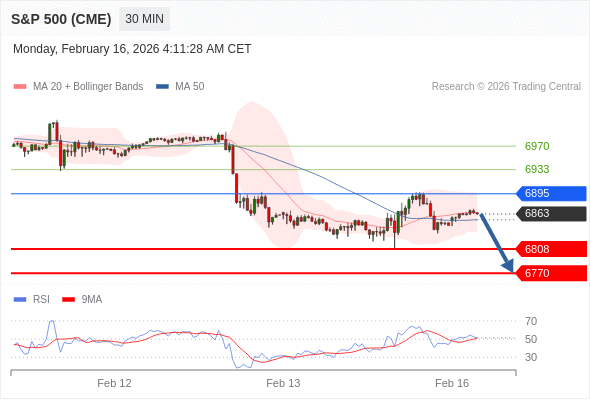 美国标普500指数期货 (H6) 当日内: 目标位为6808。