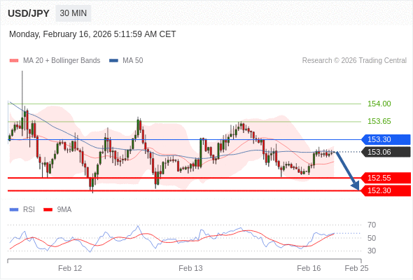 在 153.30 之下,看跌,目标价位为 152.55 ,然后为 152.30 。
