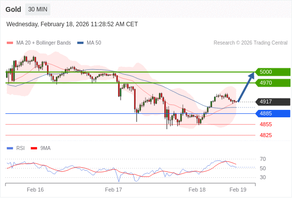 交易策略: 在 4885 之上,看涨,目标价位为 4970 ,然后为 5000 。