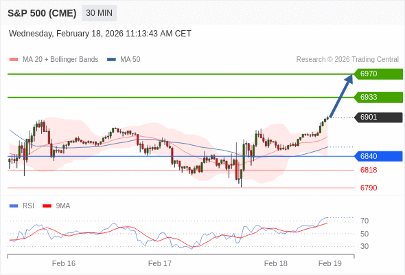 在 6840 之上,看涨,目标价位为 6933 ,然后为 6970 。