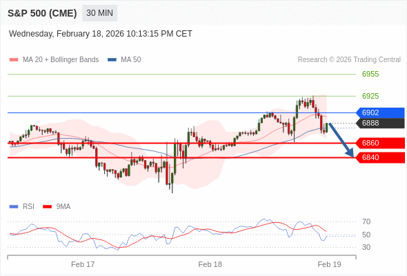 交易策略: 在 6902 之下,看跌,目标价位为 6860 ,然后为 6840 。