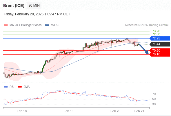 交易策略: 在 72.25 之下,看跌,目标价位为 70.60 ,然后为 70.10 。
