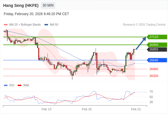 在 26640 之上,看涨,目标价位为 26950 ,然后为 27110 。