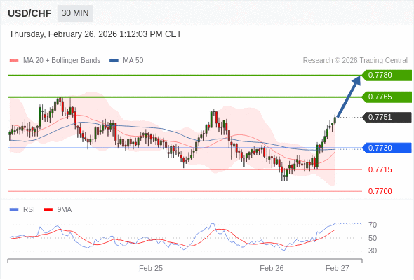 在 0.7730 之上,看涨,目标价位为 0.7765 ,然后为 0.7780 。