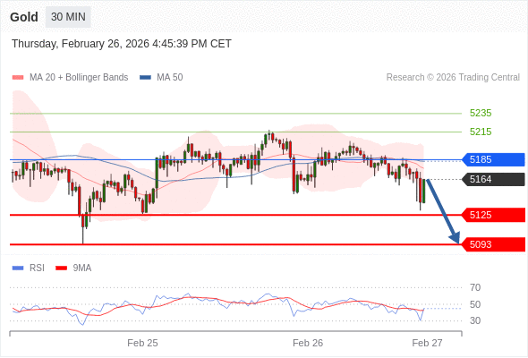 在 5185 之下,看跌,目标价位为 5125 ,然后为 5093 。