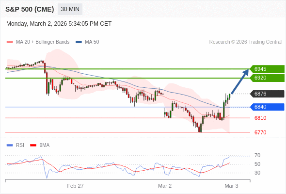 在 6840 之上,看涨,目标价位为 6920 ,然后为 6945 。