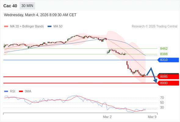 Cac 40 当日内: 下跌趋势。