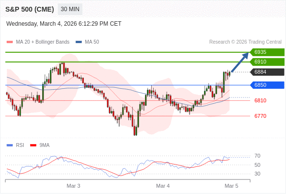 在 6850 之上,看涨,目标价位为 6910 ,然后为 6935 。