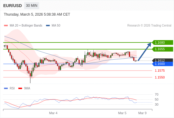 在 1.1600 之上,看涨,目标价位为 1.1655 ,然后为 1.1680 。