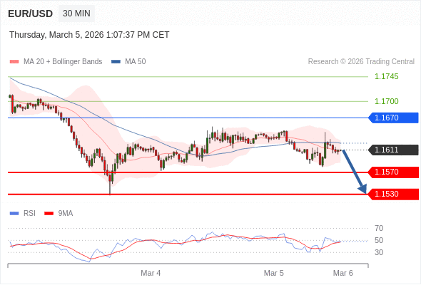 交易策略: 在 1.1670 之下,看跌,目标价位为 1.1570 ,然后为 1.1550 。