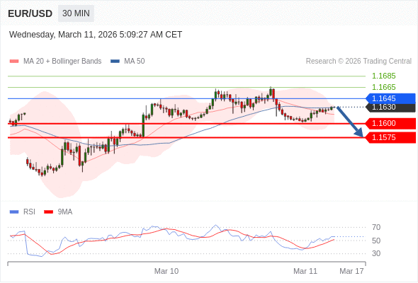 交易策略: 在 1.1645 之下,看跌,目标价位为 1.1600 ,然后为 1.1575 。