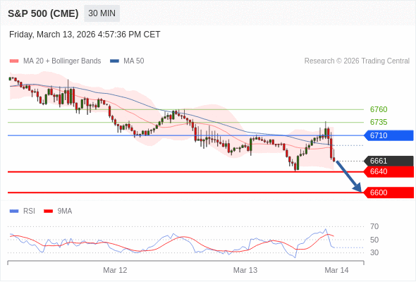 在 6710 之下,看跌,目标价位为 6640 ,然后为 6600 。