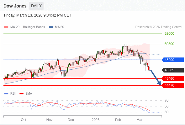 在 48200 之下,看跌,目标价位为 45460 ,然后为 44470 。