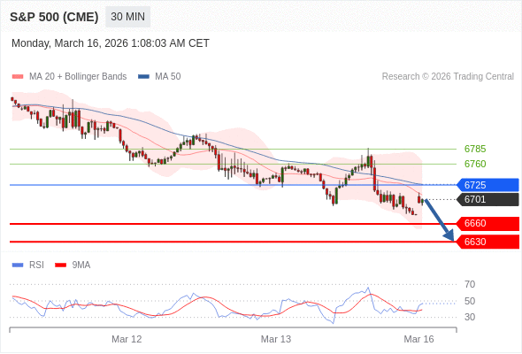 在 6725 之下,看跌,目标价位为 6660 ,然后为 6630 。