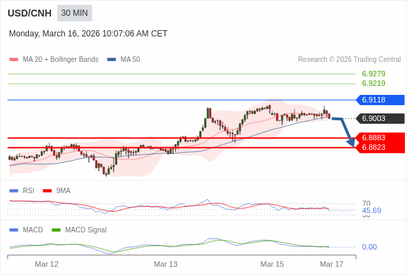 美元/人民币 当日内 : 看跌,当 6.9118 为阻力位。