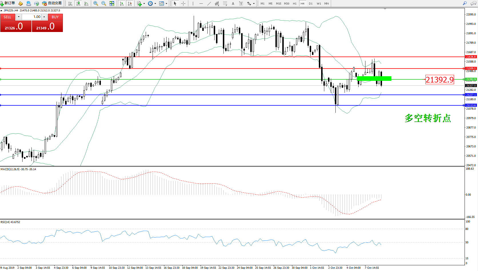 日经指数JPN225——4小时K线图: