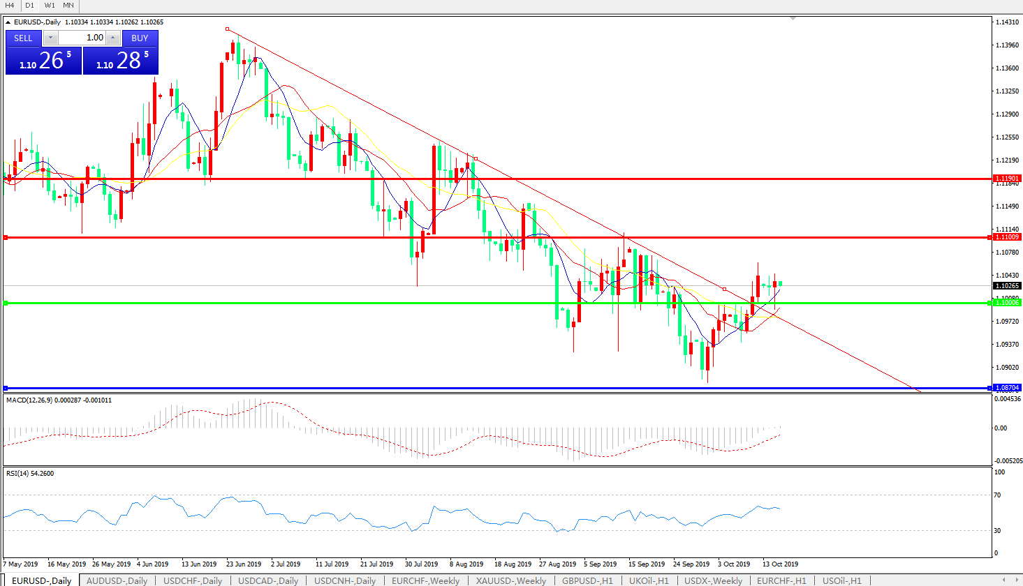 交易策略:1.1000上方看涨,目标1.1100、1.1190