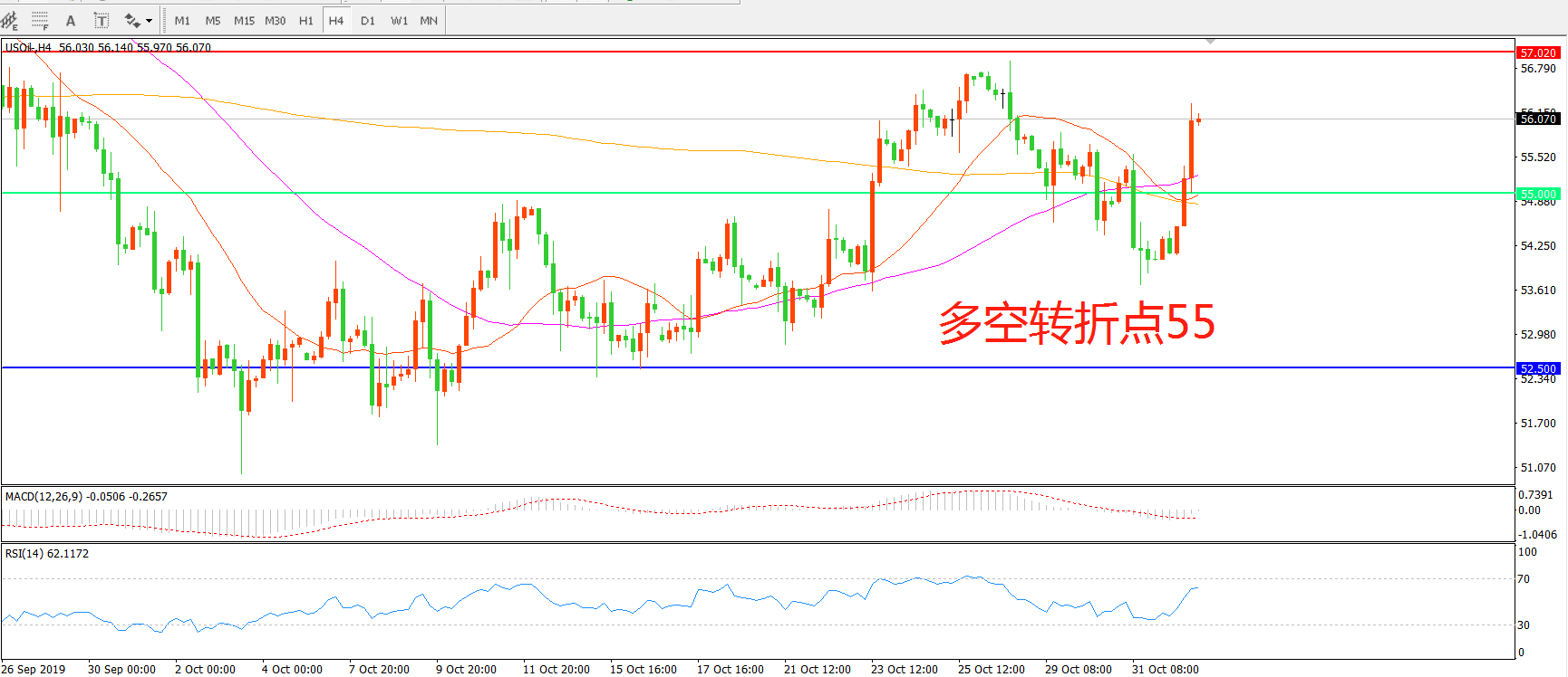 交易策略:在55.00之上看涨,目标57.00 58.50