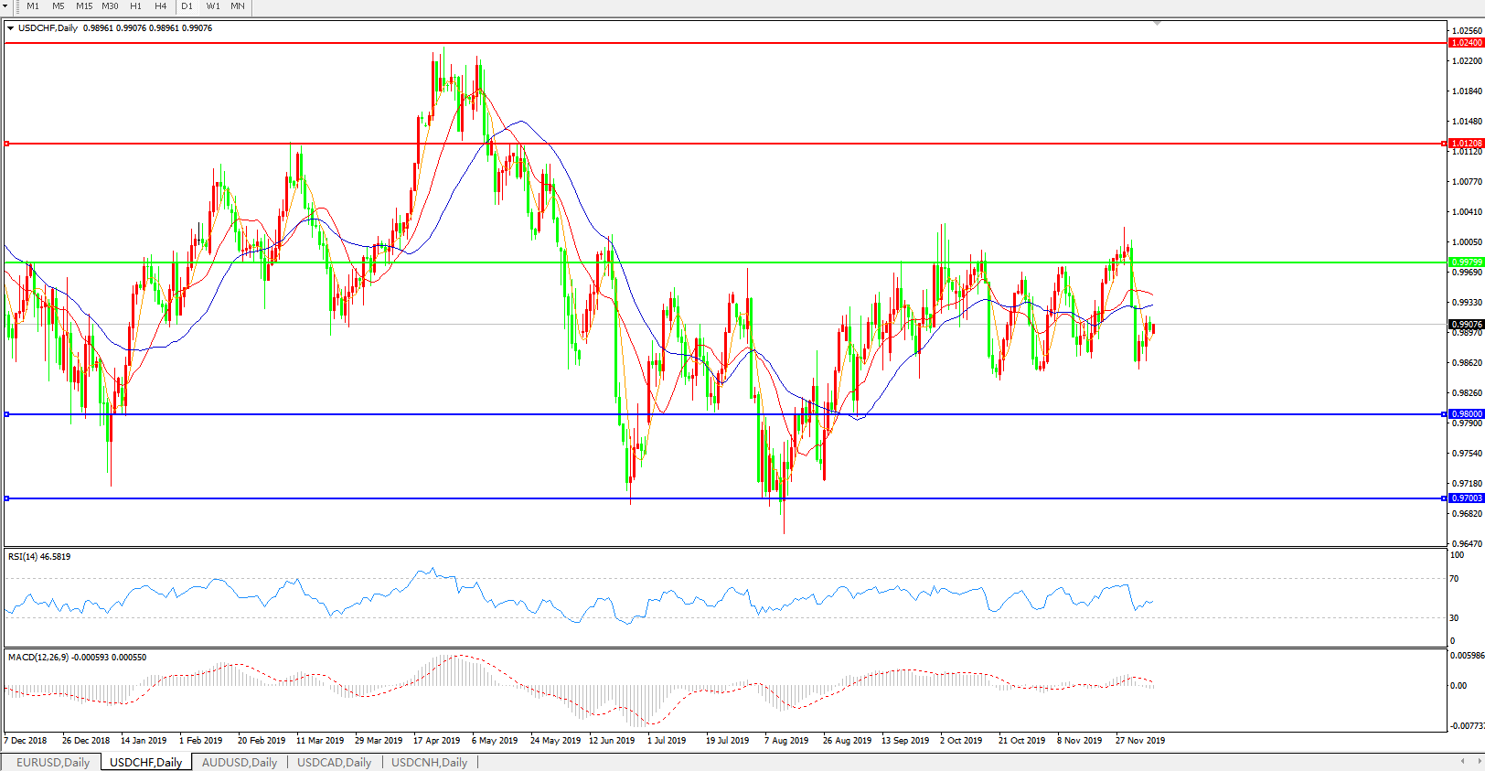 美元兑瑞郎USDCHF 日线图:
