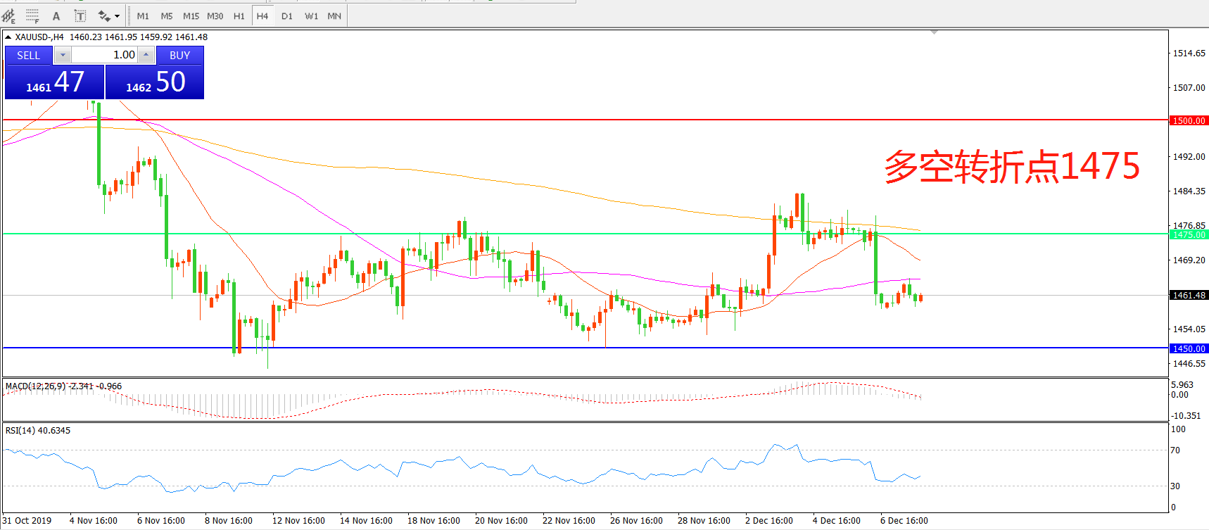多空转折点:1475.00