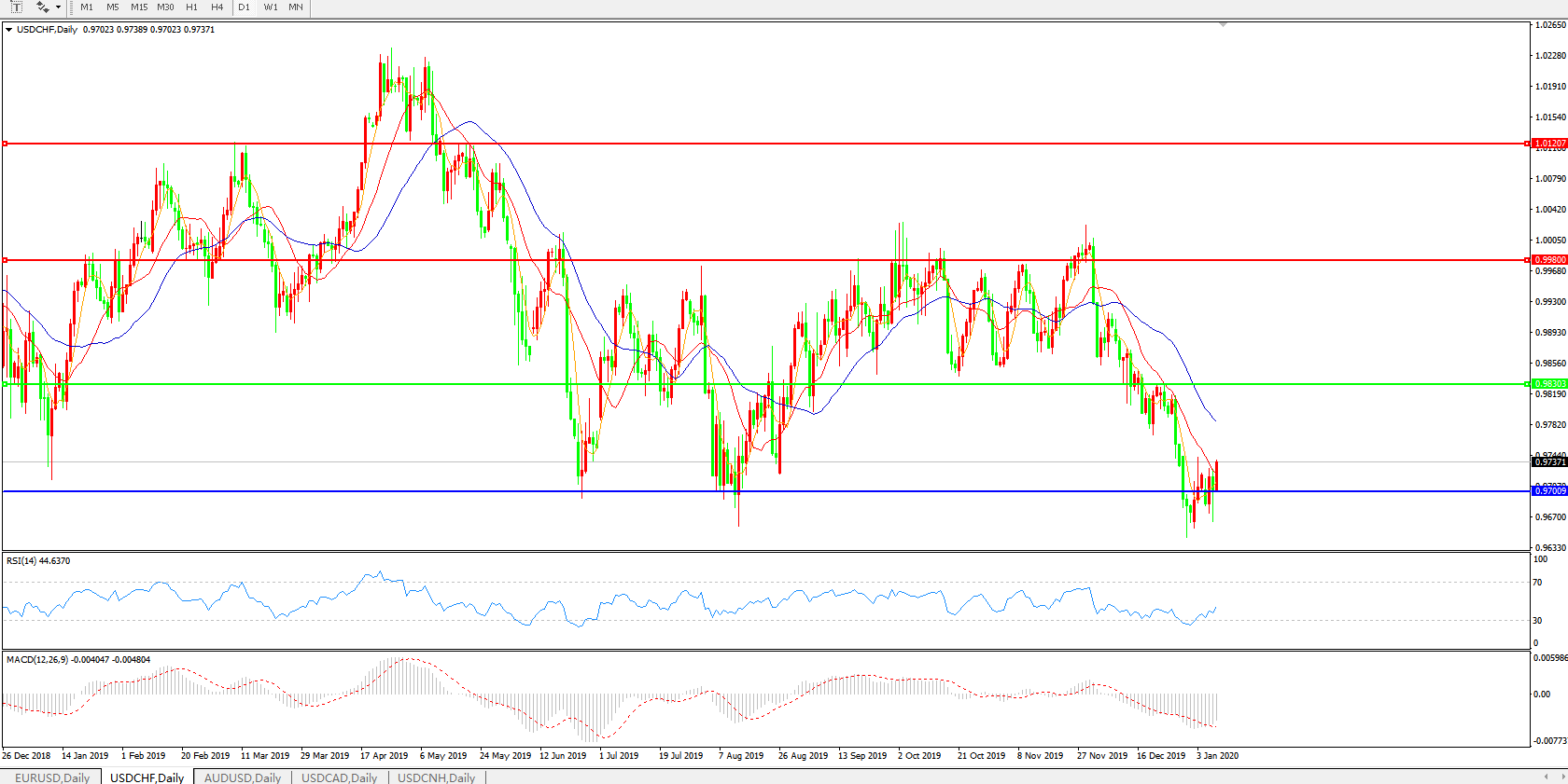 美元兑瑞郎USDCHF 日线图: