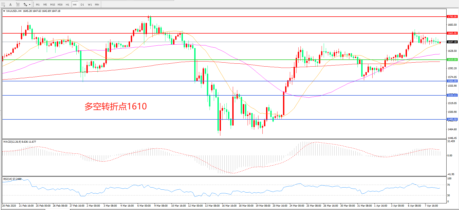 现货黄金XAU/USD    4小时图