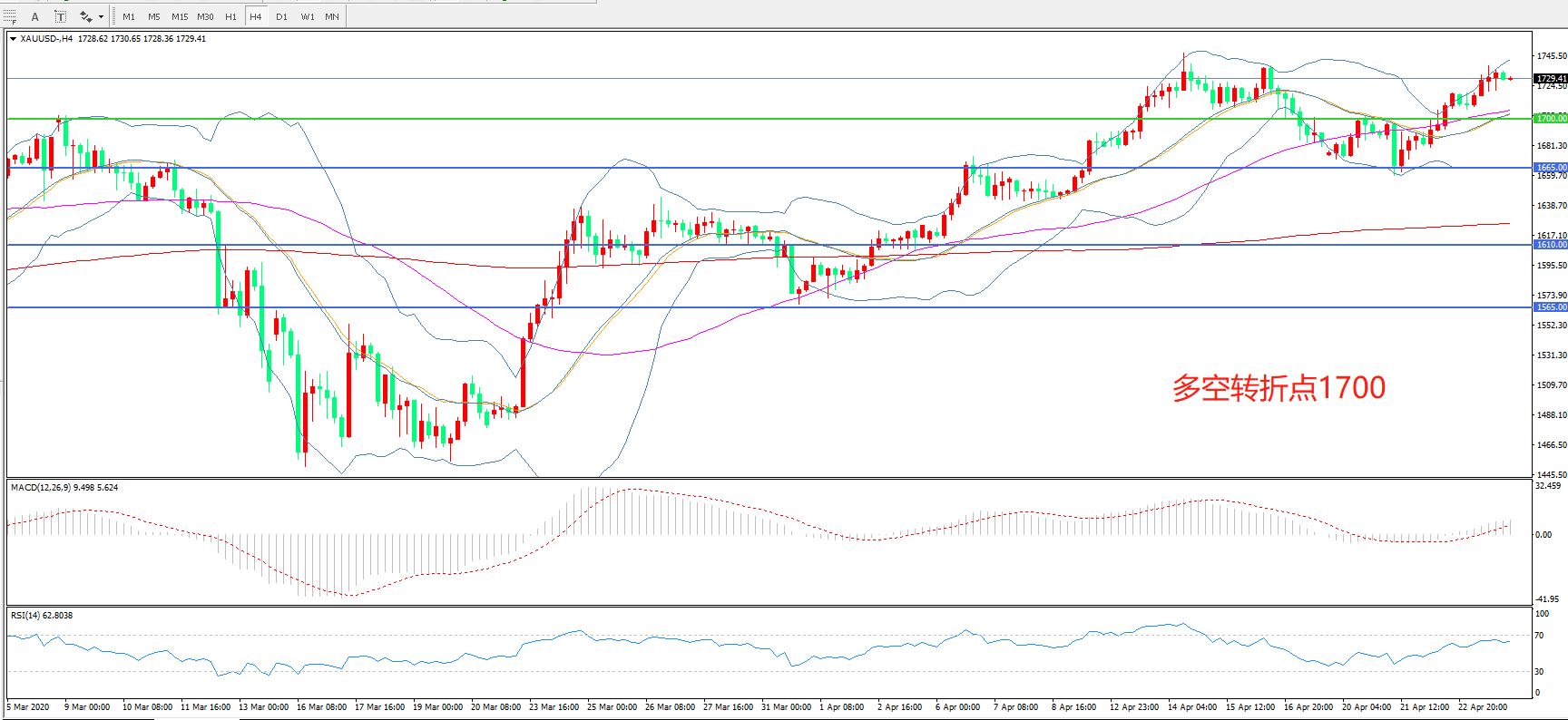 多空转折点:1700.00
