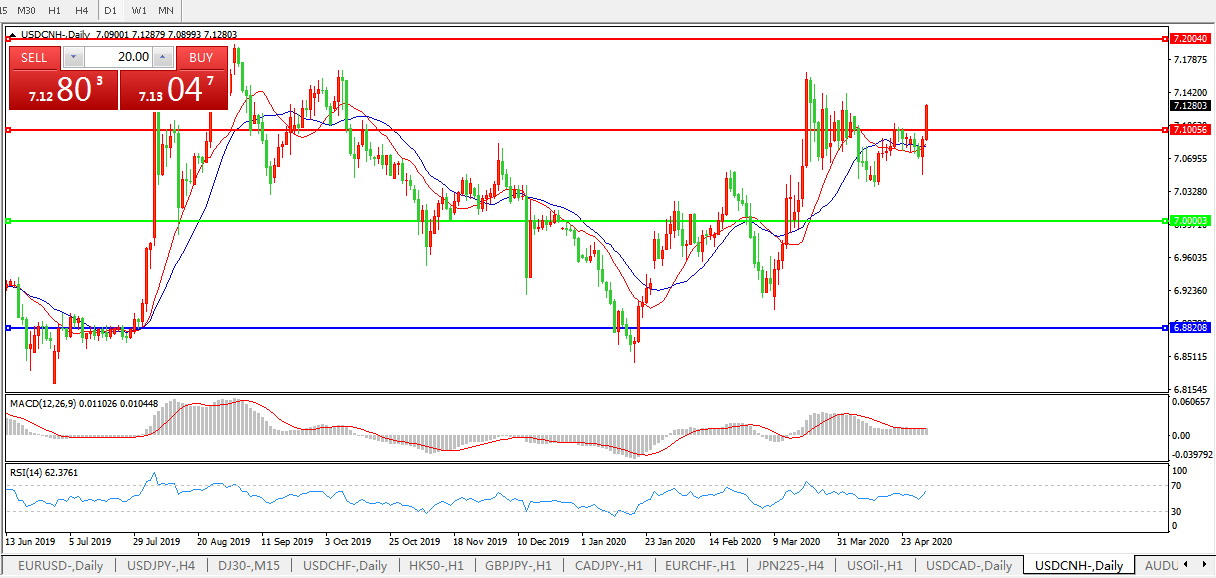 美元兑人民币USDCNH    日线图: