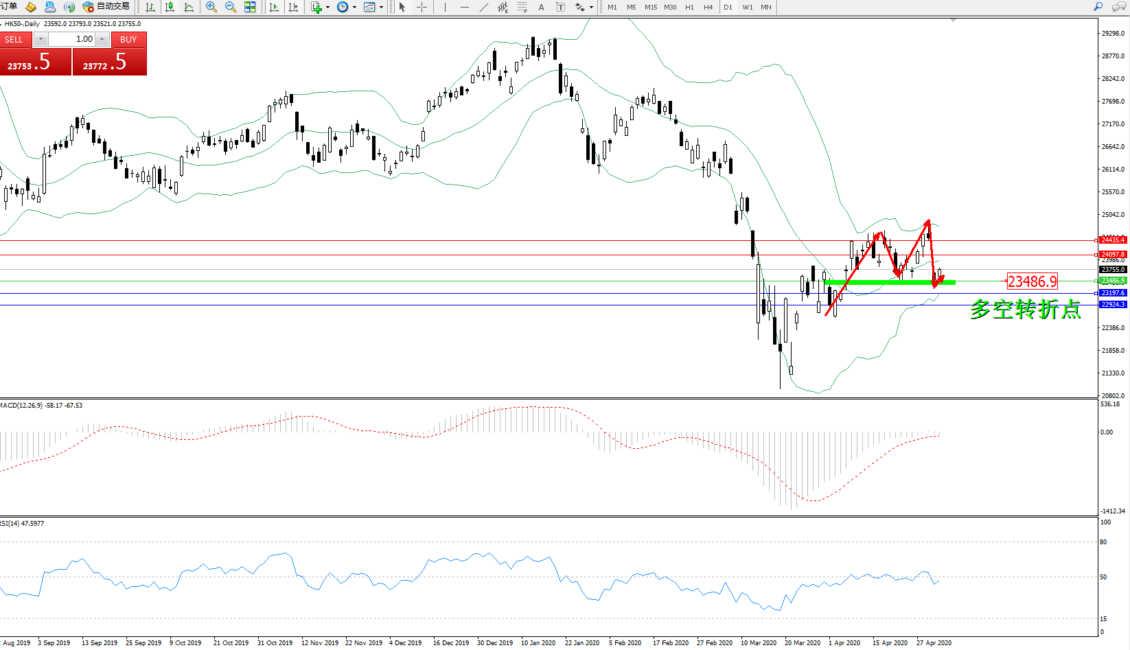 香港恒生指数5月5日(周二)收盘上涨254.86点,涨幅1.08%,报23868.66点;港股市场迎来反弹,盘中三大指数涨幅皆超1.2%。餐饮股与零售股大涨,九毛九飙升超15%创新高。大市交易额较昨日下降超300亿港元,缩量至704.55亿港元。香港目前的流动性较美元与内地要略紧,未来有望更为宽松,这对于市场是正面的影响。而A股的流动性也有望随着利率下降和社会融资的高增长,而得到改善。工银国际对于港股与A股近期的走势较为乐观。在板块方面,因为主要受情绪和资金的推动,因此中小盘股,科技股等会有更大的机会。从3月低位计算恒指累计反弹17%,预计投资者获利出场的压力会逐步增大。投资方面,短线国家加大传统基建投资,集中上马重大基建工程,预计将刺激工程机械(挖掘机)和水泥需求。