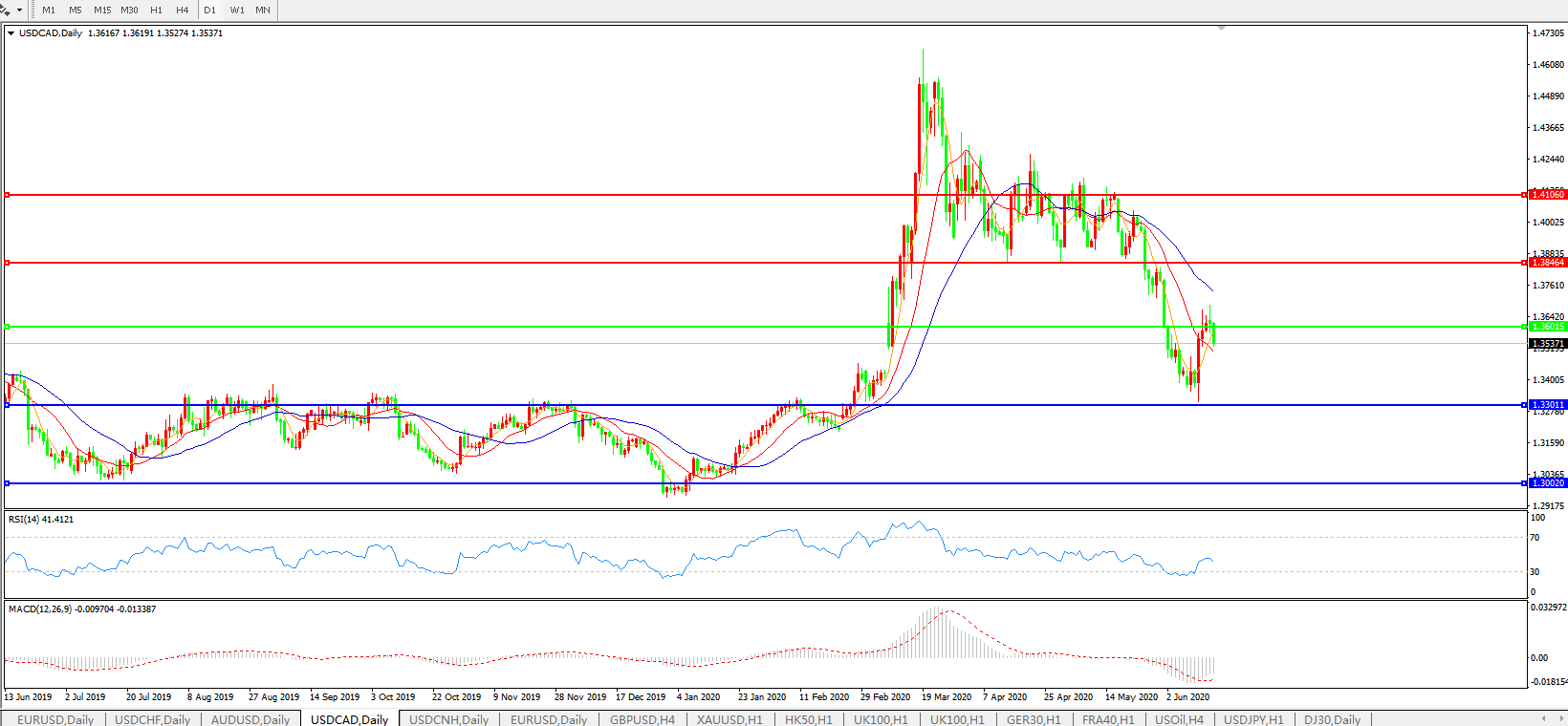 美元兑加元USDCAD 日线图: