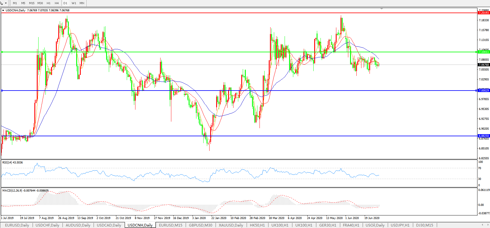 美元兑人民币USDCNH    日线图: