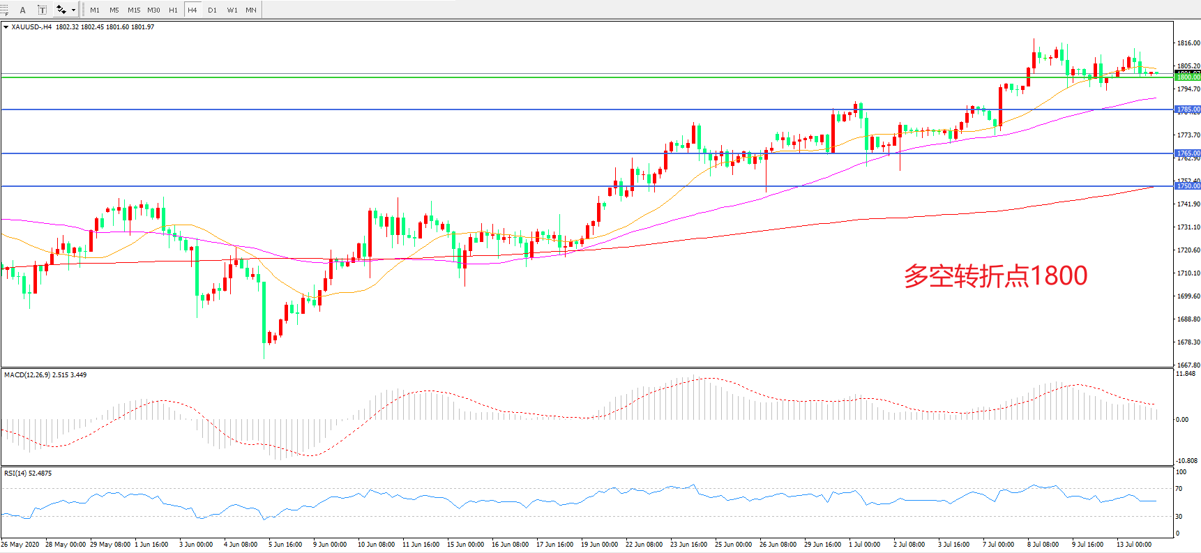 交易策略:在1800.00之上看涨,目标1820.00 1845.00