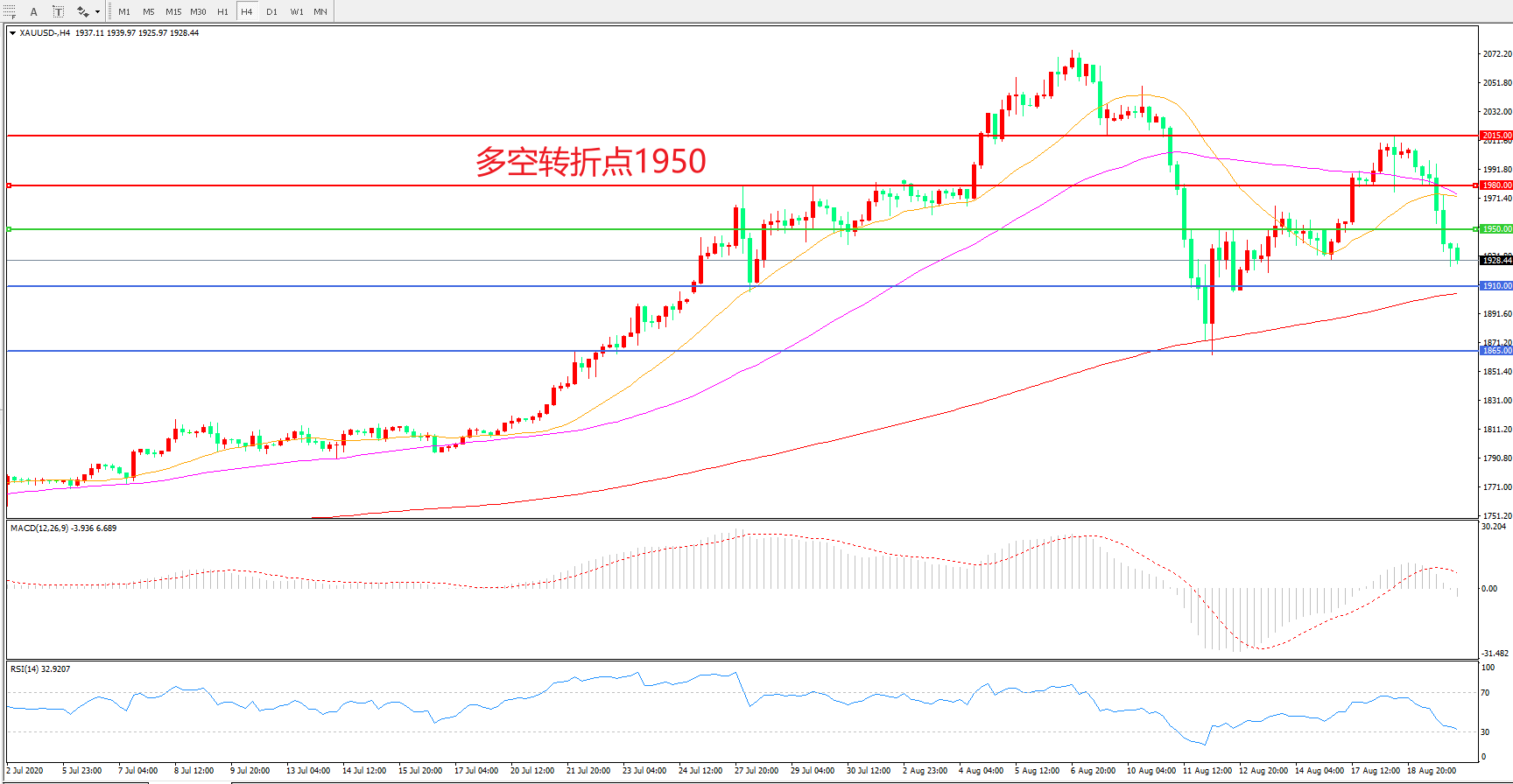 现货黄金XAU/USD    4小时图