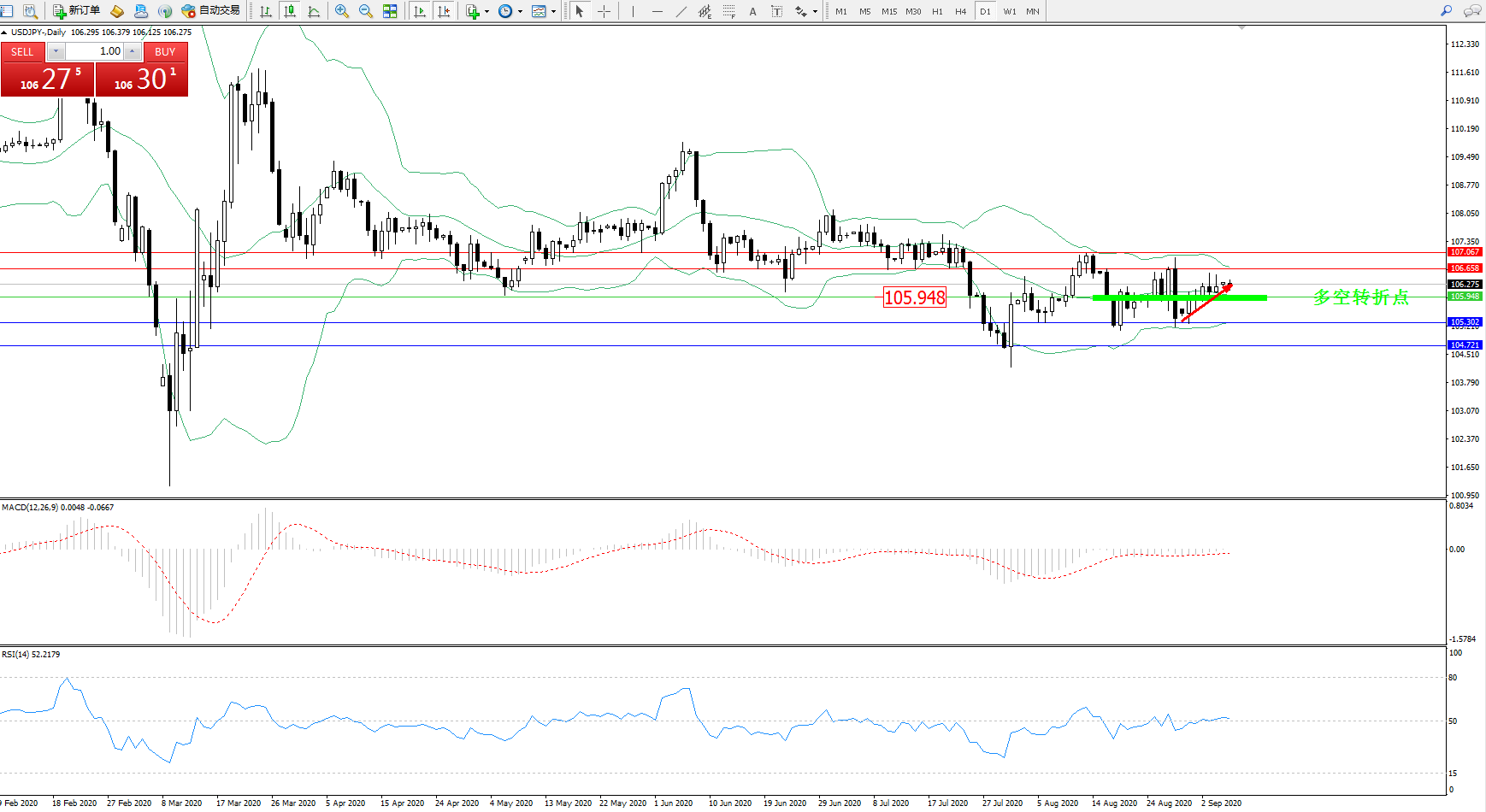 美元兑日元窄幅震荡,日内美元走高,但日元也受到避险需求支撑,一方面,全球疫情对经济冲击不可避免,全球股市纷纷承压,另一方面,英欧谈判陷入困境,英国方面表态强硬,这也带给日元避险支撑,而投资者还在等待日本大选的结果。由于日本首相安倍辞职后日元的大幅升值已经证明是短暂的,而菅义伟重申了他作为受欢迎的连续性候选人的立场,日元几乎没有变化,随着市场参与者更加确信安倍经济学政策不太可能在新领导层的领导下发生变化,如果市场参与者继续对安倍经济学提升日本通胀的能力失去信心,那么日元将继续逐步走强,就像美元兑日元在2015年6月达到125.86的峰值后,近年来所表现的那样。