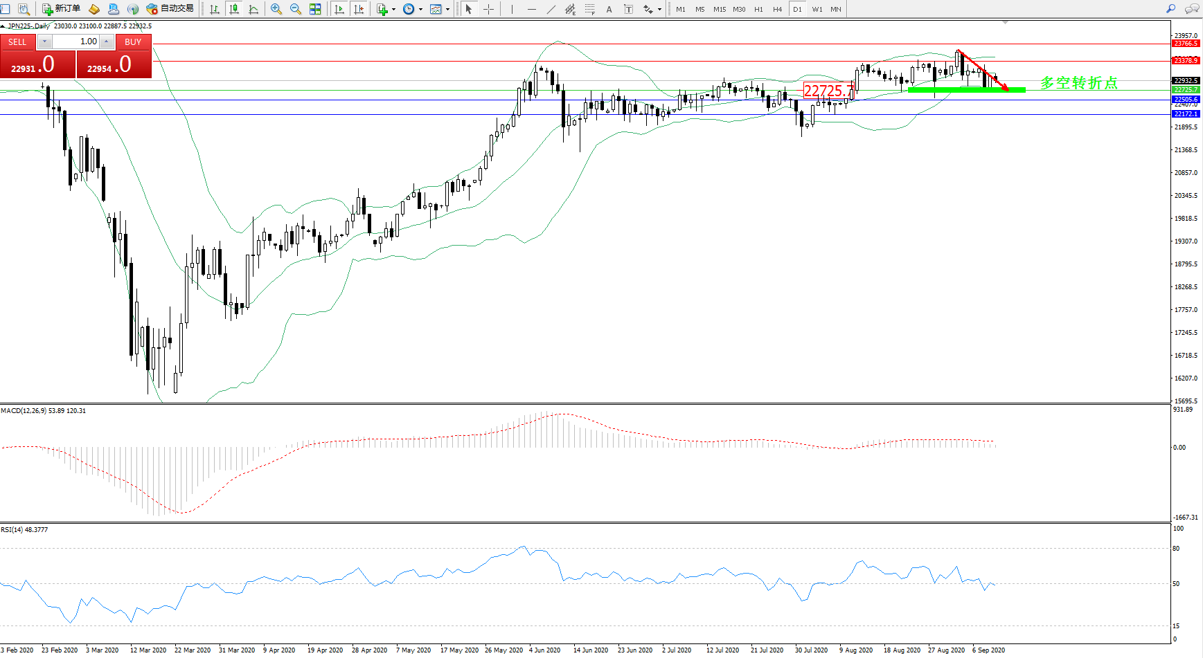 日经225指数9月10日(周四)收盘上涨189.96点,涨幅0.82%,报23222.50点。日本防卫相河野太郎表示,考虑到2021年东京奥运会的准备工作,将在下周选出的新任首相会在10月份解散众议院举行大选。河野当天参加了一家智库举办的线上讨论会,他在发表演讲时提及了众议院解散和大选的日期,“下周将会选出新首相,然后他将解散众议院并举行大选,时间大概是10月份。考虑到延期至明年的东京奥运会,解散和大选的时期非常有限”。日本民众将在11月的美国总统大选之前选出新首相,作为现任内阁成员,河野的发言被认为极具分量,可能会对日本政局的走向造成影响。但有专家指出,宣布解散众议院是首相的职责,河野并没有具体权限,其言论可能只是日本政府放出的“观测气球”,并不是日本政府的正式意向。