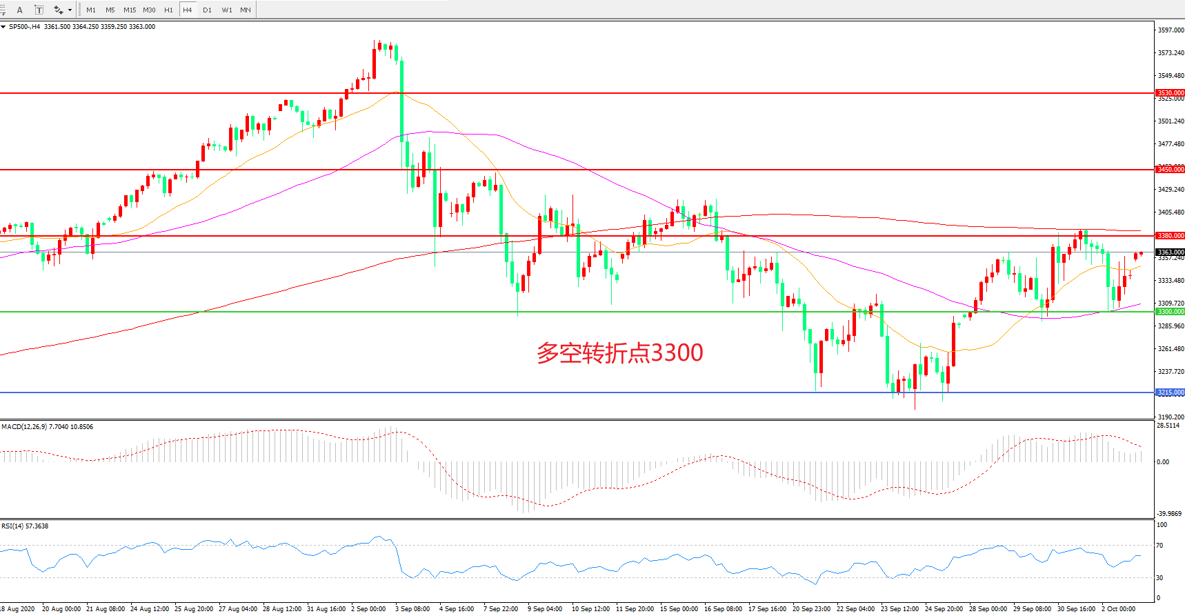 多空转折点:3380.00